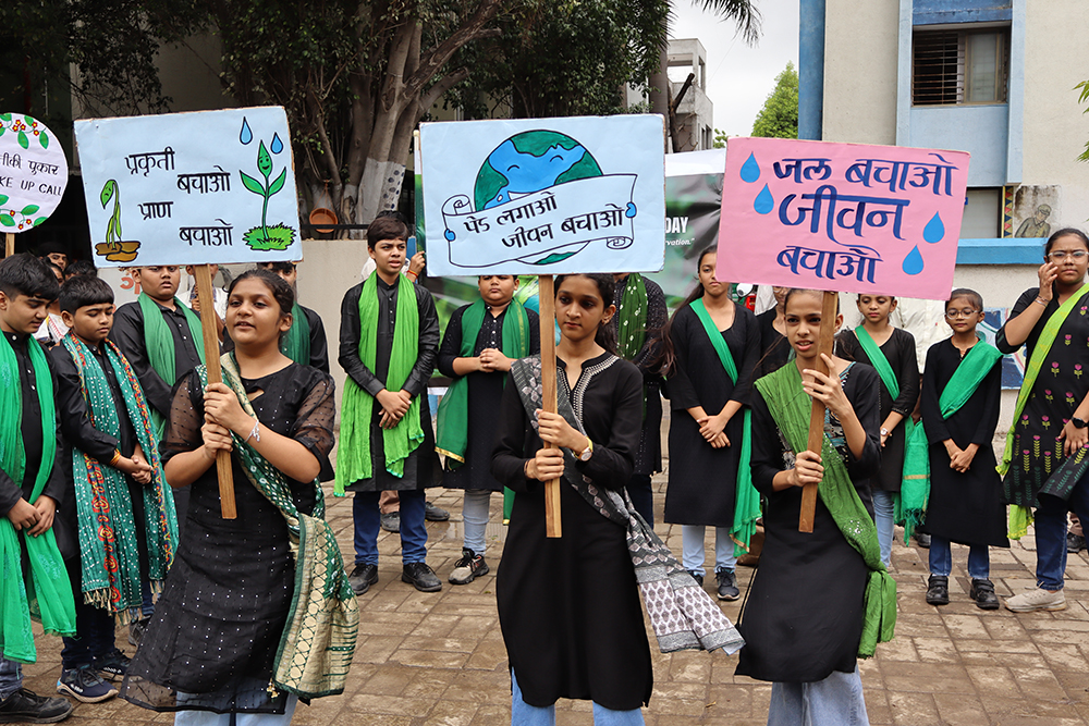 Language development is promoted through storytelling, elocution, declamation, Spell Bee, and language labs for strong English skills.