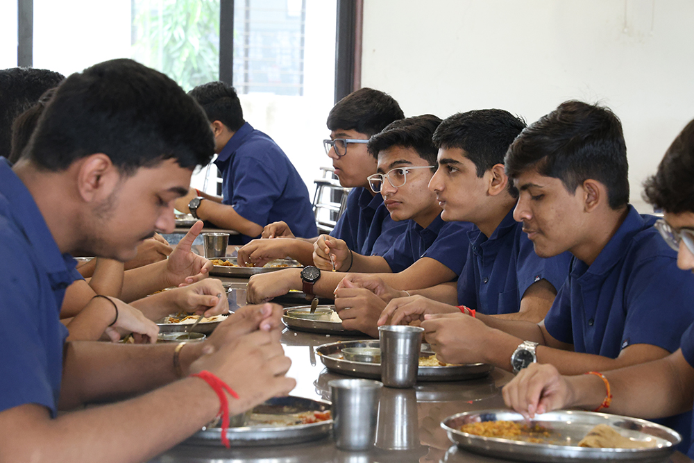 The school's food philosophy is rooted in providing pure, nutritious, and Saatvik food that gives students the feeling of home. The menu, designed by a dedicated Nutritionist, is carefully planned to offer variety and balance.