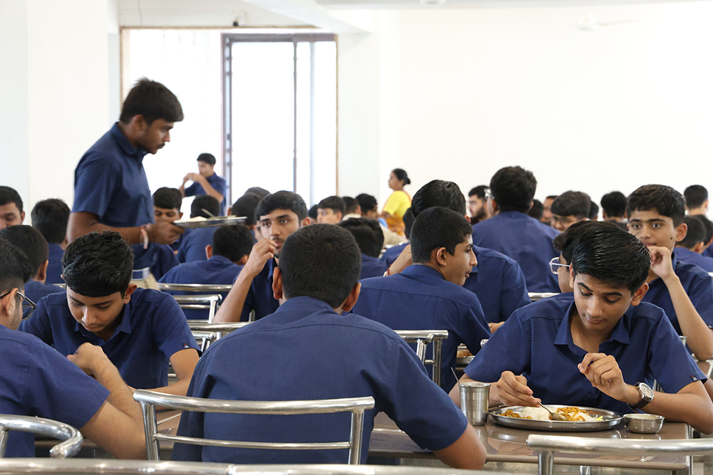 The school's food philosophy is rooted in providing pure, nutritious, and Saatvik food that gives students the feeling of home. The menu, designed by a dedicated Nutritionist, is carefully planned to offer variety and balance.